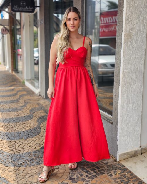 Vestido Longo Tule Vermelho
